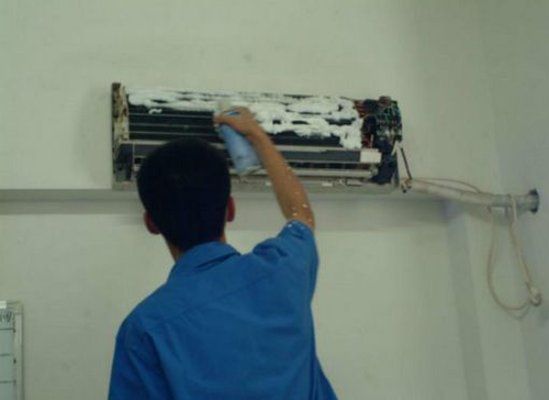 | 聂荣空调维修师傅给聂荣用户上门维修清洗空调。 |